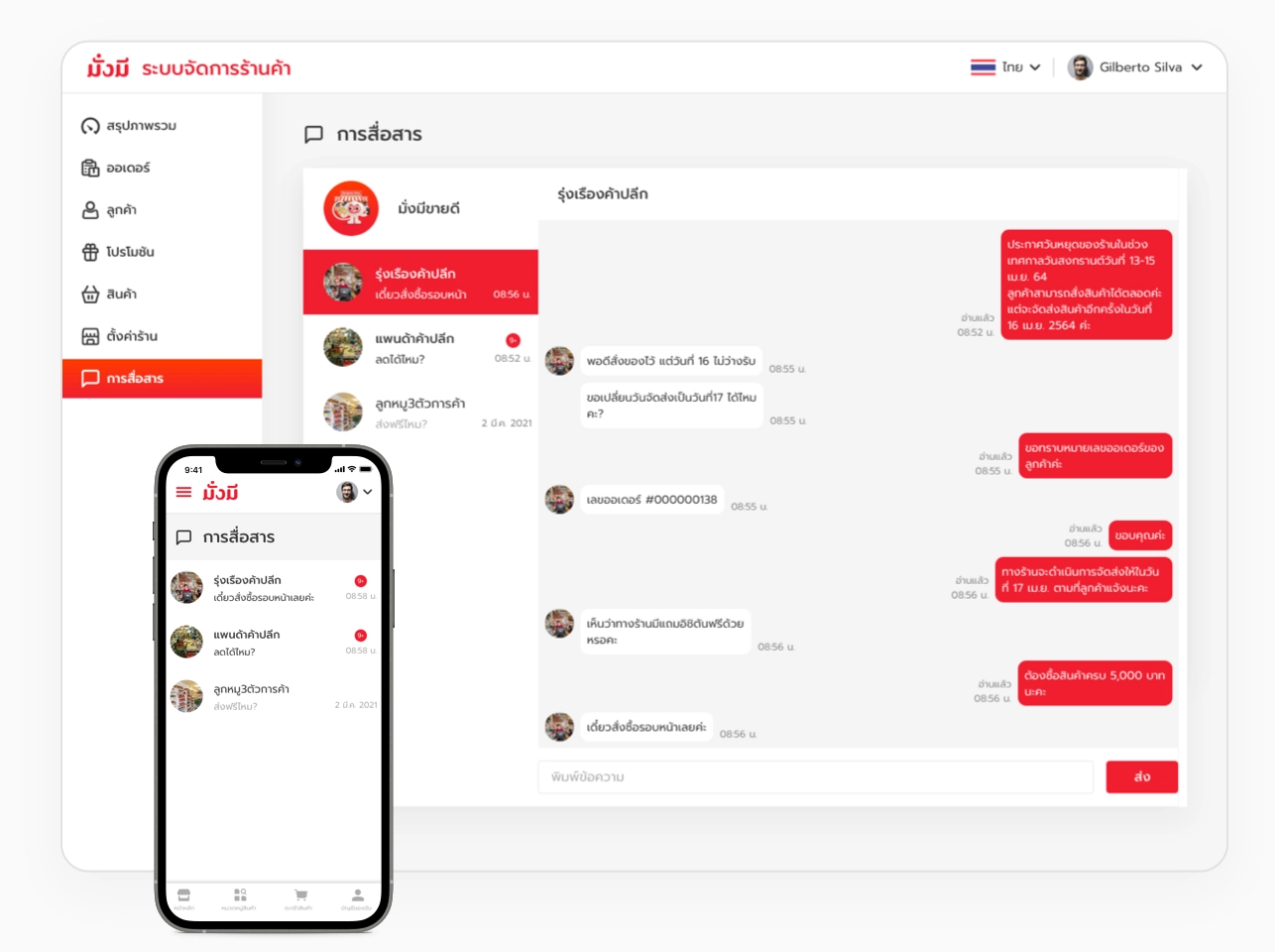 เรามีเจ้าหน้าที่ลูกค้าสัมพันธ์คอยให้บริการทุกวัน เพื่ออำนวยความสะดวกและติดตามแก้ไขปัญหาต่างๆ ให้ร้านค้า นอกจากนี้ร้านค้ายังสามารถติดต่อสื่อสารพูดคุยกับผู้ซื้อได้อย่างทันท่วงที