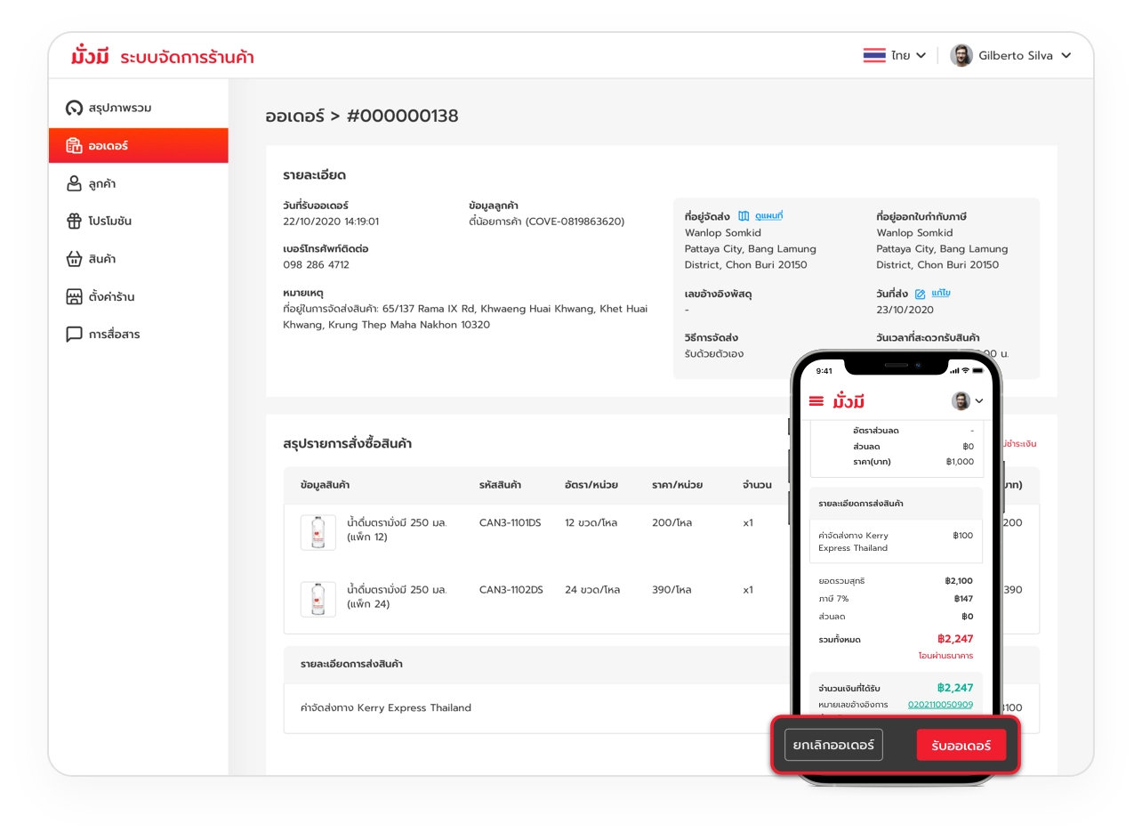 รับหรือยกเลิกออเดอร์ และอัพเดตการจัดส่งสินค้าได้ตลอดเวลา
