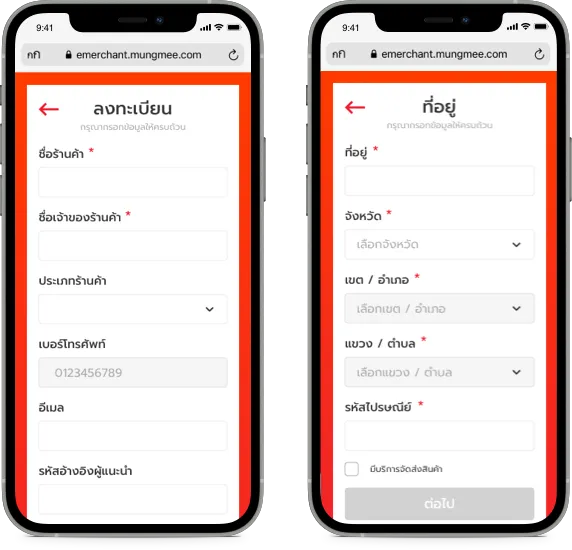 กรอกเบอร์โทรศัพท์มือถือ เพื่อรับรหัส OTP ในการยืนยัน และกรอกข้อมูลร้านค้าของคุณให้ครบถ้วน